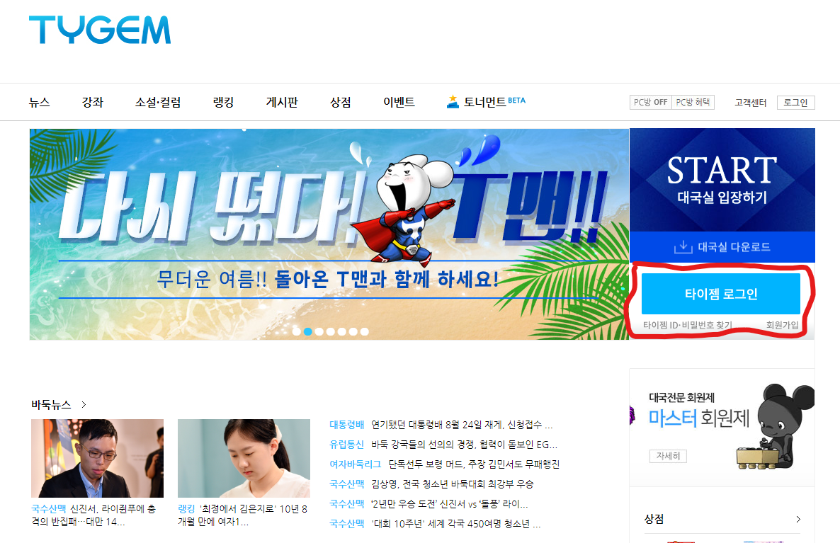 우선, 아래의 링크를 클릭하여 '타이젬 바둑'에 접속해 주세요.