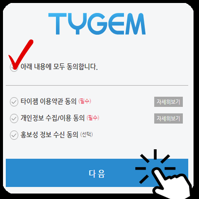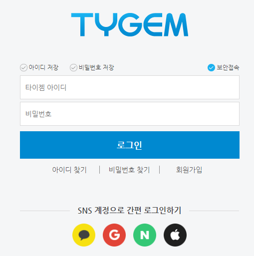 1. 타이젬 로그인을 클릭합니다.