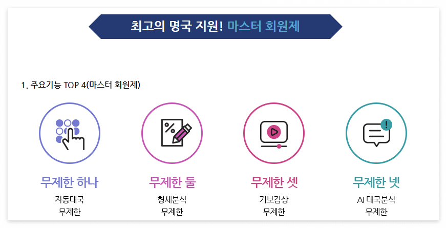 마스터 회원 등급 이상일 경우 1일 무제한이라고 되어 있는데 1달 결제로 1만원이 필요 했습니다. 유료 회원인 경우 인공지능 대국 뿐만 아니라 다양한 컨텐츠를 이용할 수 있어서 꽤 매력적으로 다가오긴 했습니다.