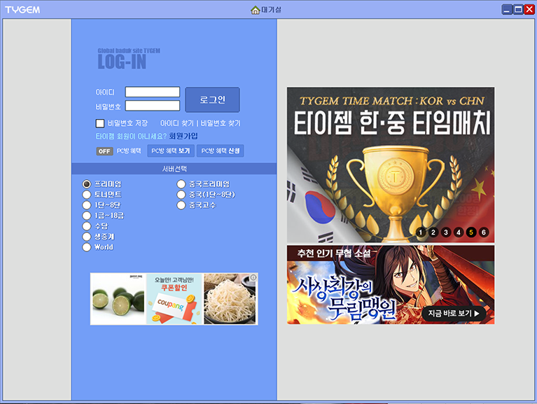여기까지 타이젬 바둑 대국실 설치 방법 및 회원 가입부터 이용 방법까지 안내해드렸습니다