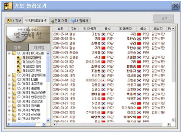 기보감상 - 일반회원의 기보 부터 대회별 기보와 인기프로기사의 기보까지 살펴 보실 수 있습니다.