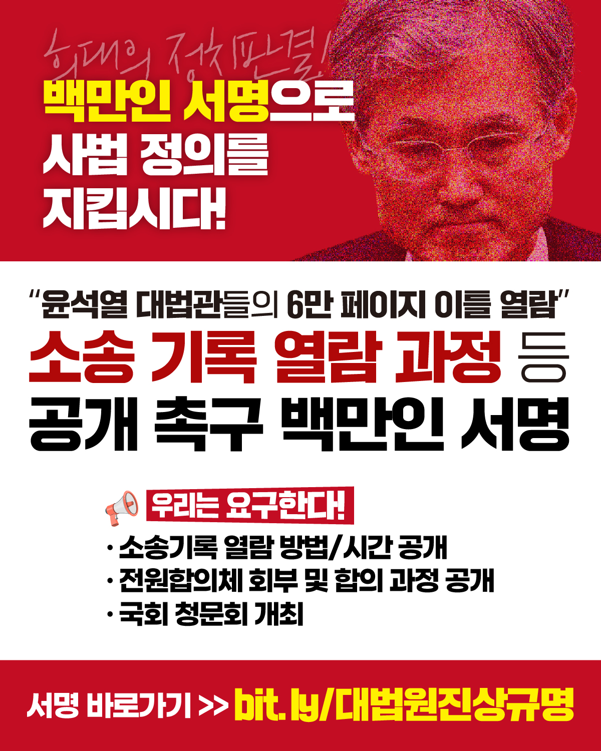[“윤석열 대법관들의 6만 페이지 이틀 열람” 소송 기록 열람 과정 등 공개 촉구 로그기록 서명운동 백만인 서명운동]